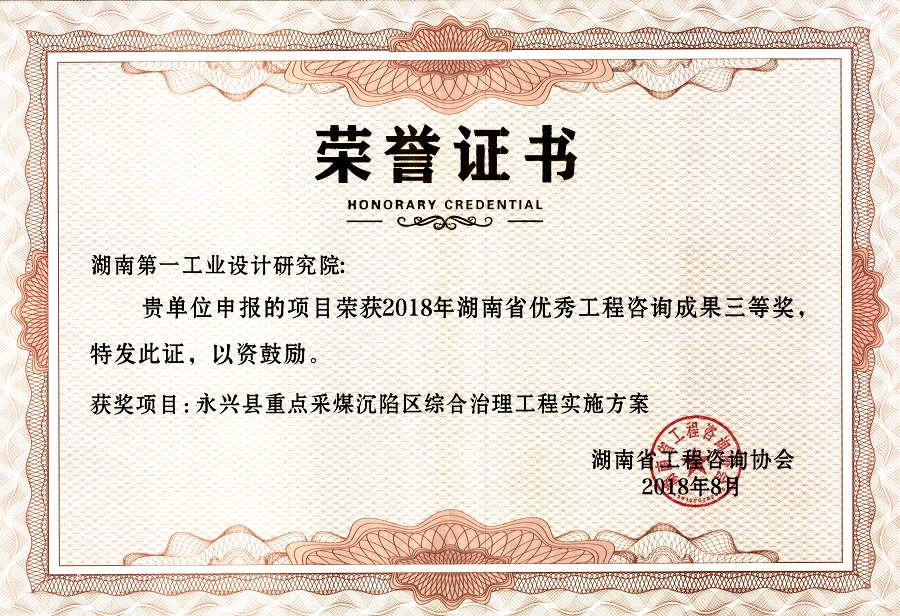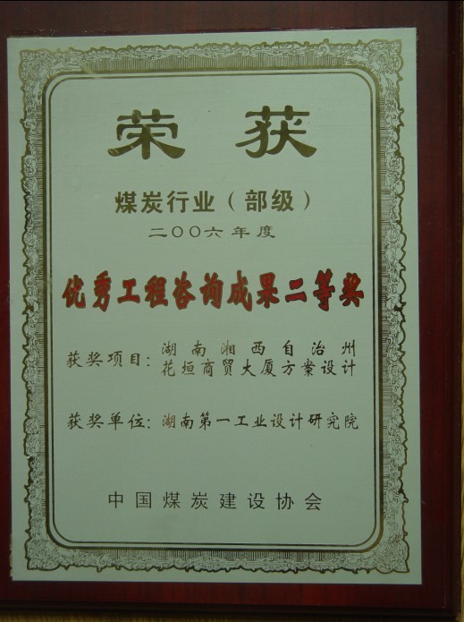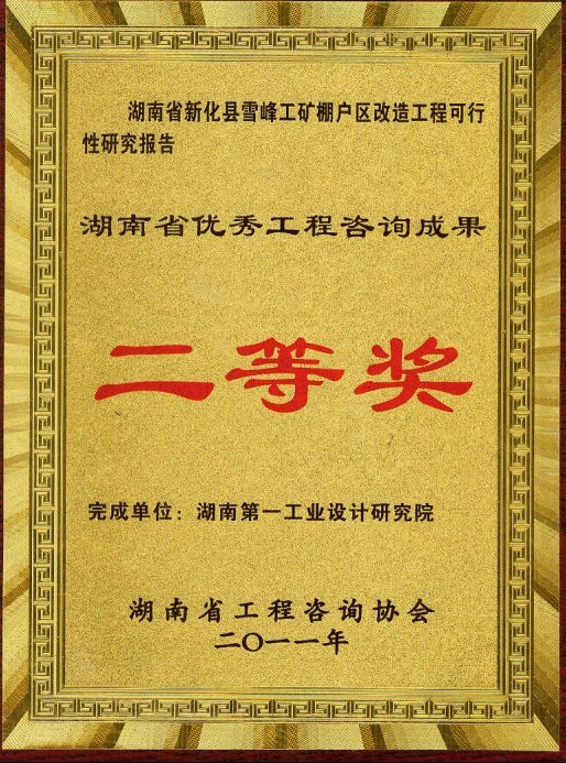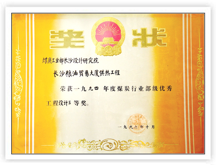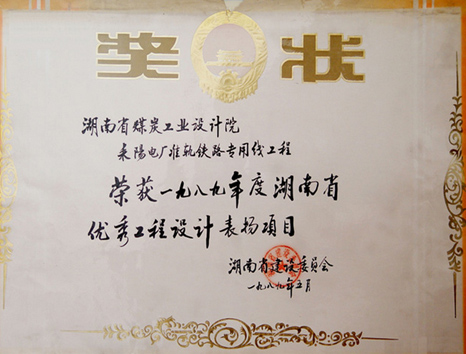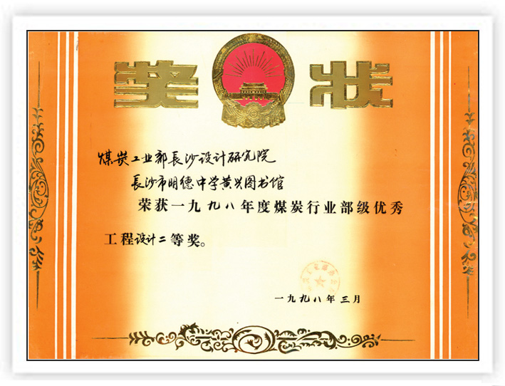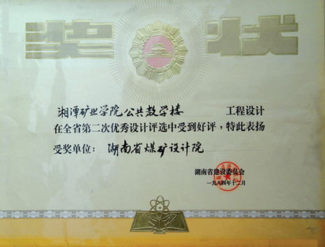 湖南省優(yōu)秀設(shè)計(jì)表?yè)P(yáng)金獎(jiǎng)(1984)