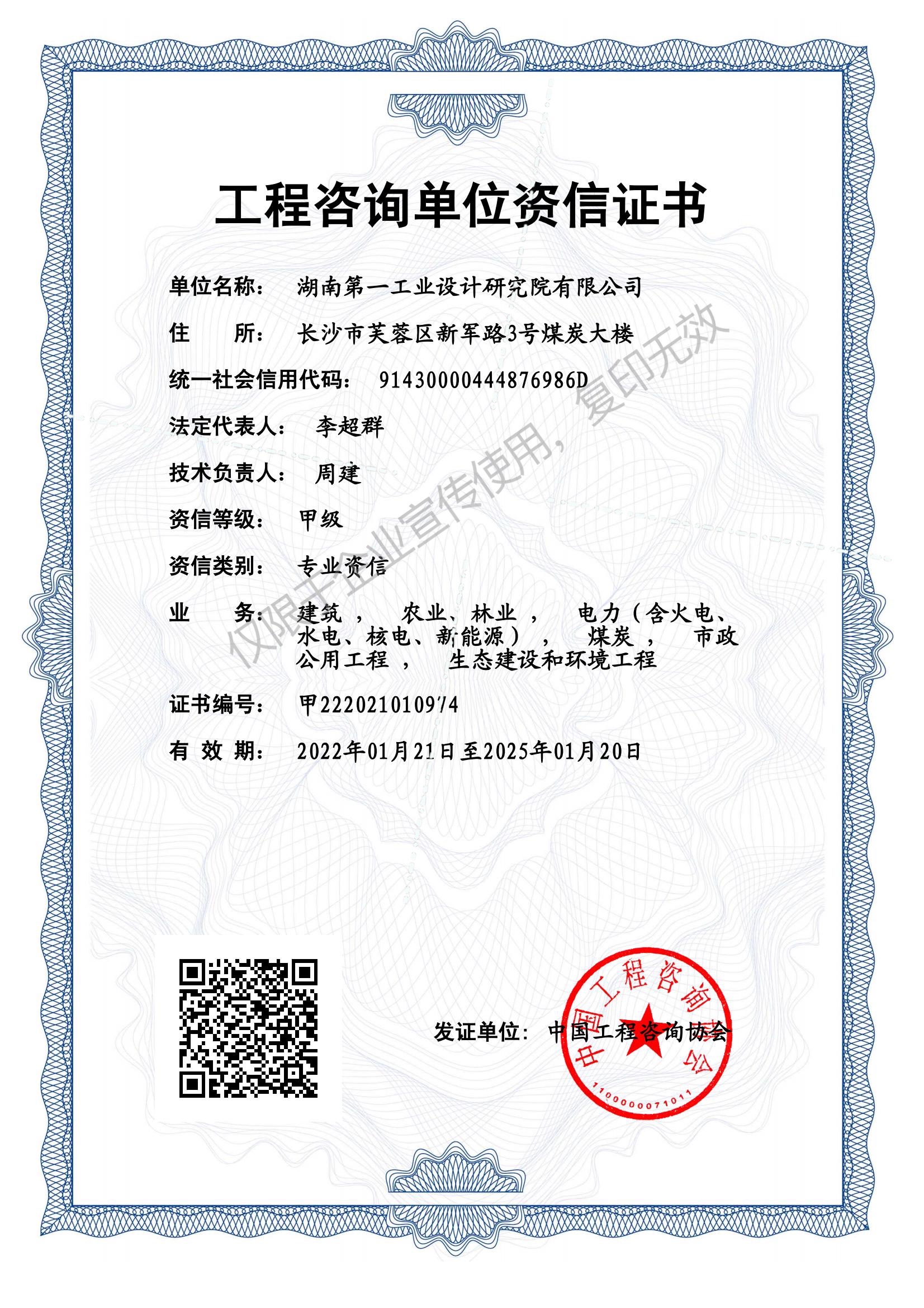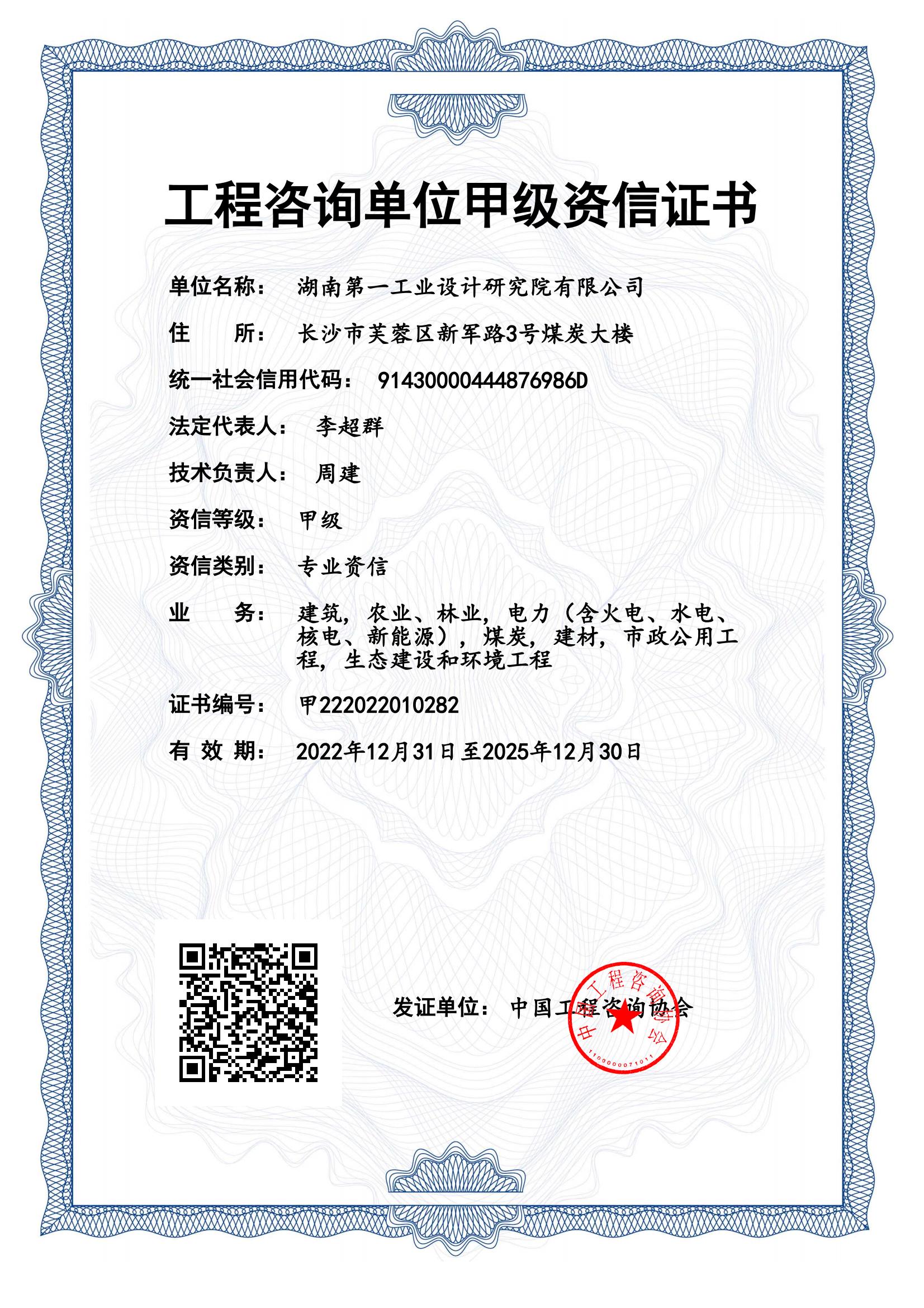 工程咨詢(xún)單位甲級(jí)資信證書(shū)