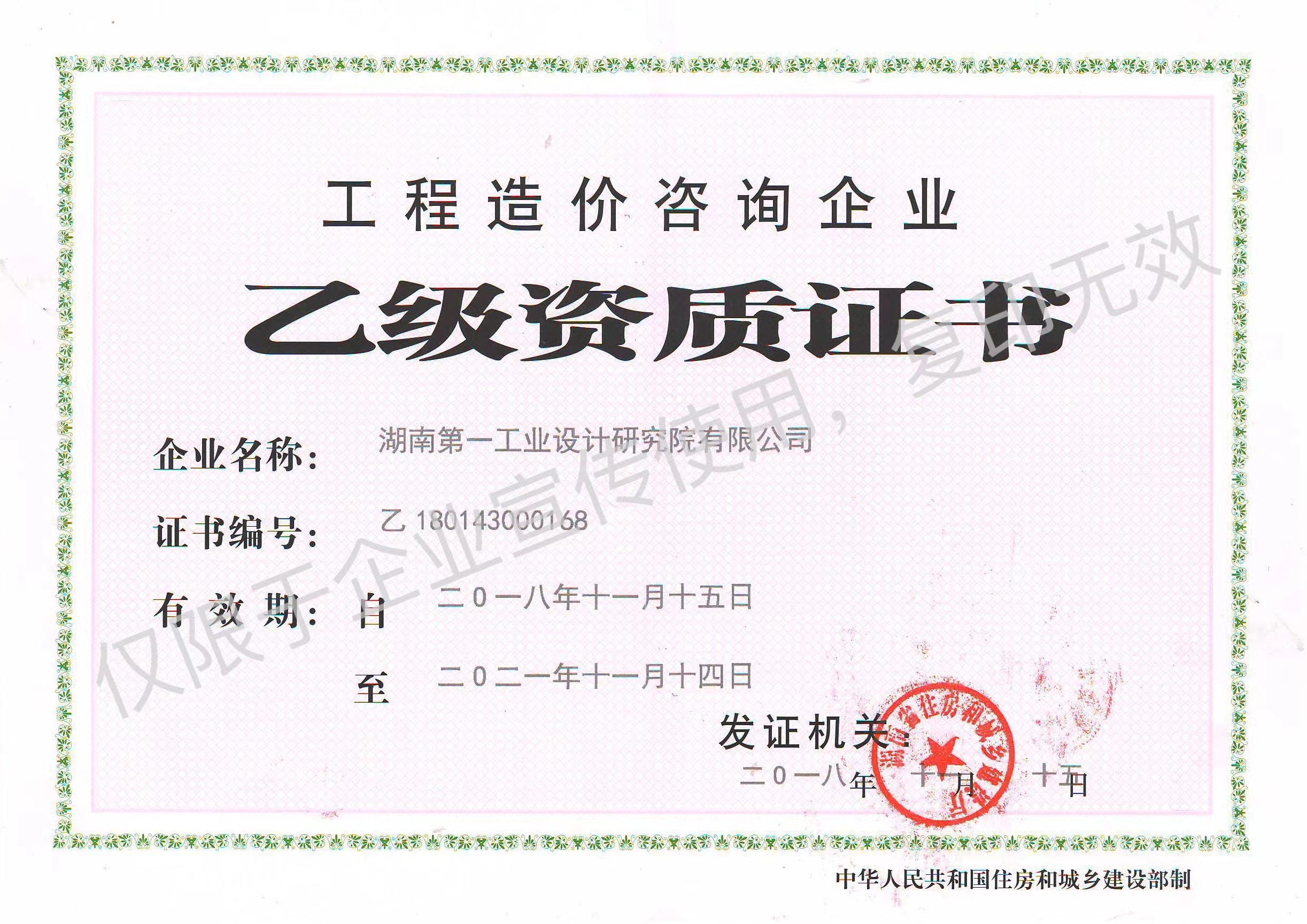 工程造價(jià)咨詢(xún)企業(yè)乙級(jí)資質(zhì)證書(shū)