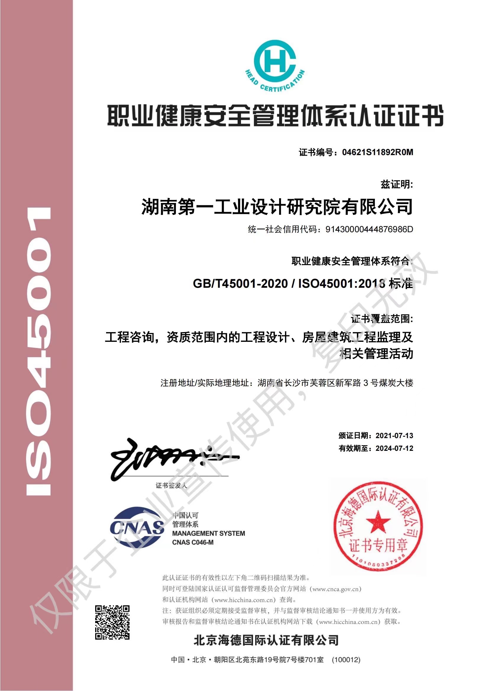 ISO45001職業(yè)健康管理體系認(rèn)證證書(shū)…