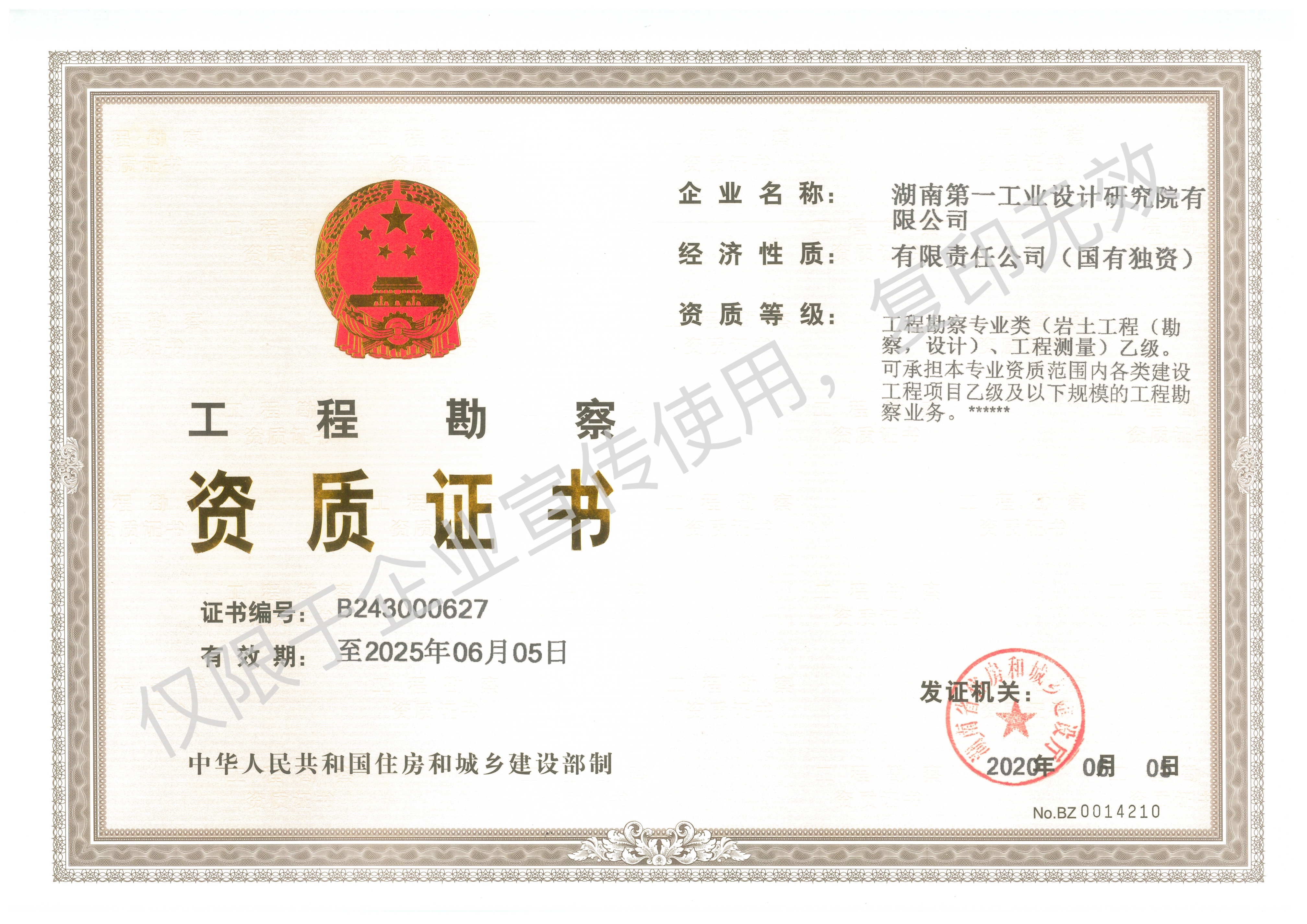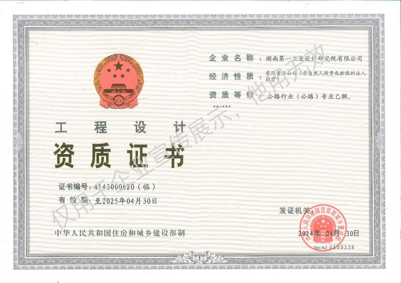 工程設(shè)計(jì)乙級(jí)資質(zhì)證書(shū)