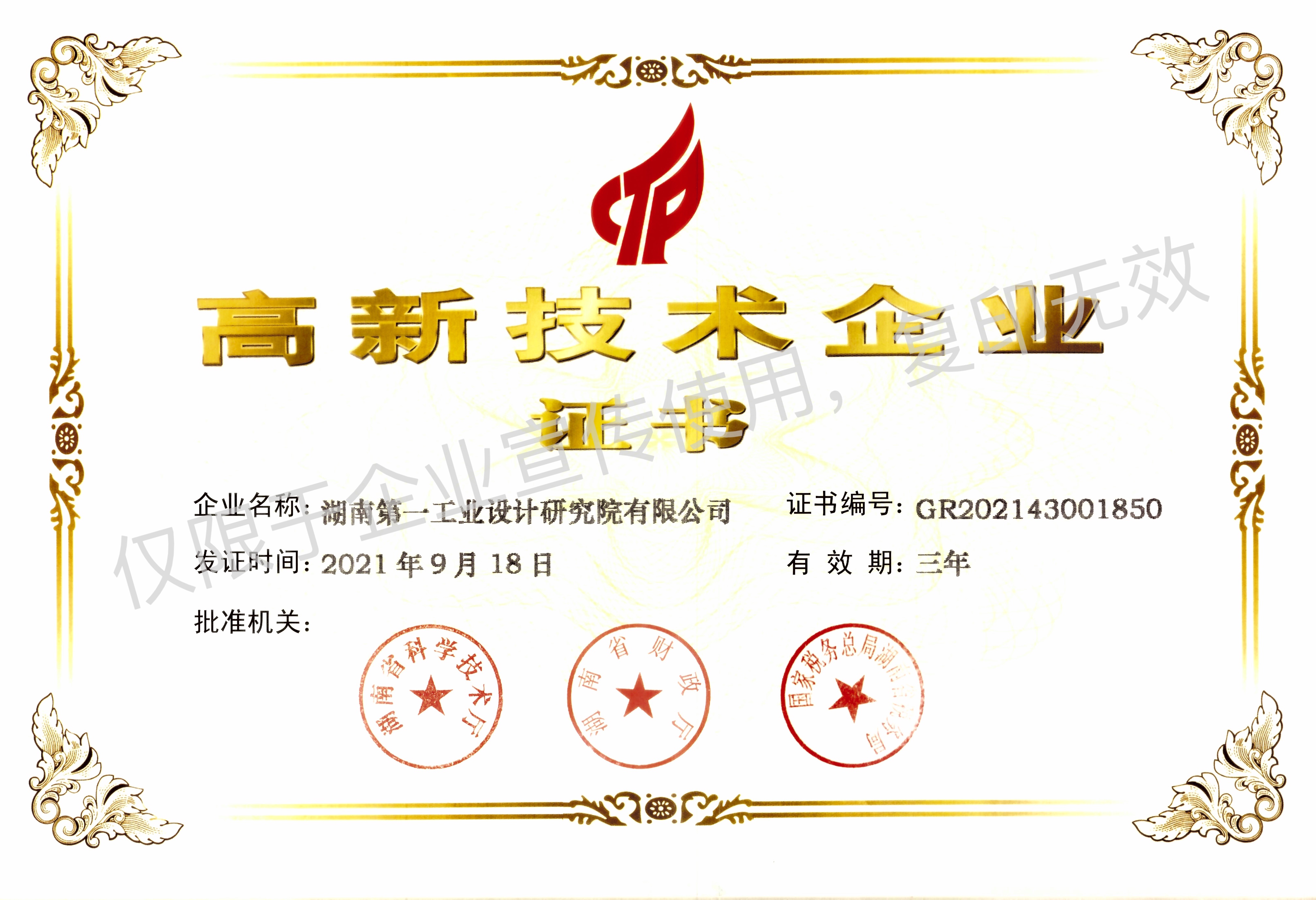 高新技術(shù)企業(yè)證書(shū)