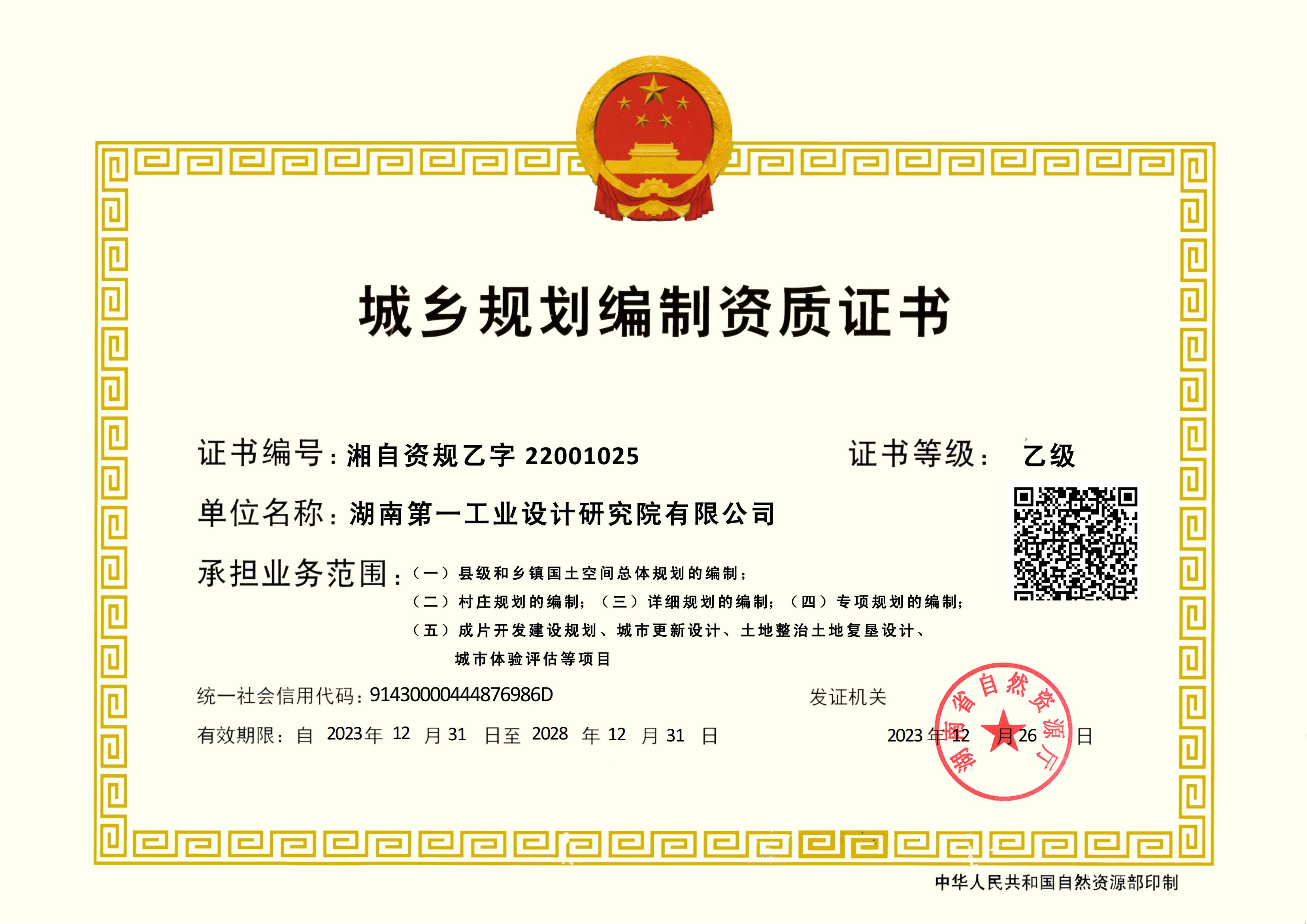 城市規(guī)劃編制資質(zhì)證書(shū)